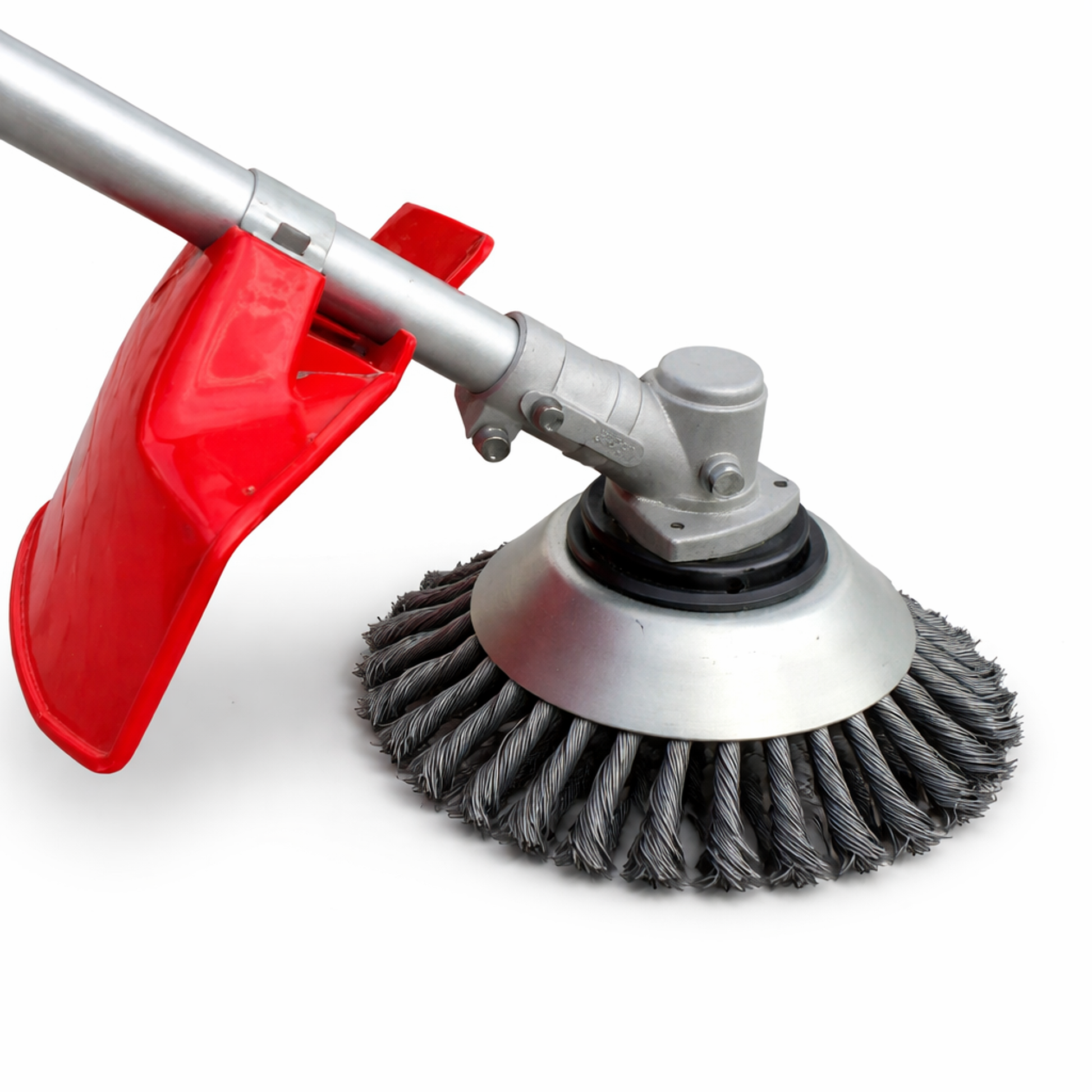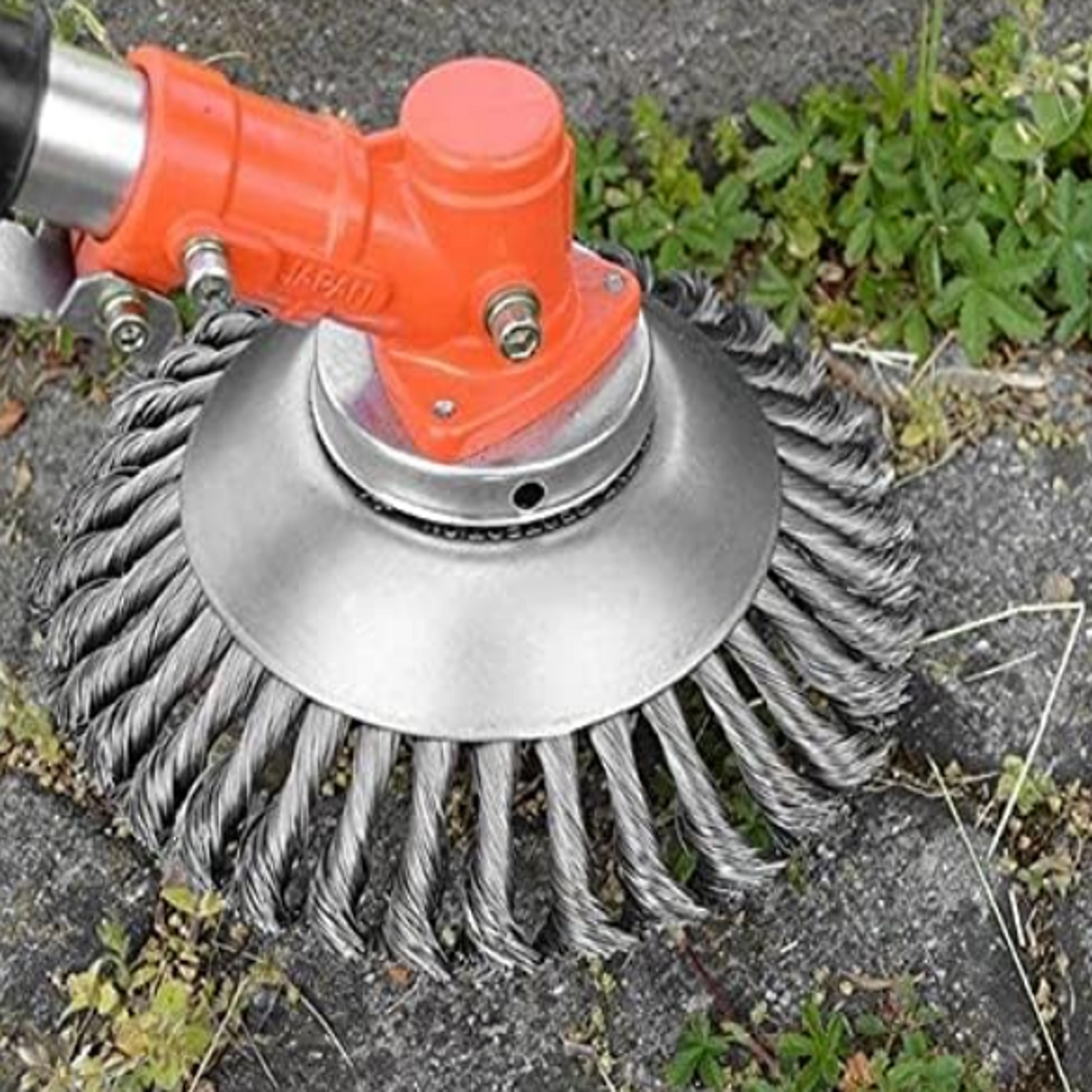 Substitui o fio de nylon por laminas de metal resistentes — corta ervas e arbustos com muito mais velocidade e durabilidade. Compativel com a maioria das rocadoras do mercado. Instalacao em 2 minutos.